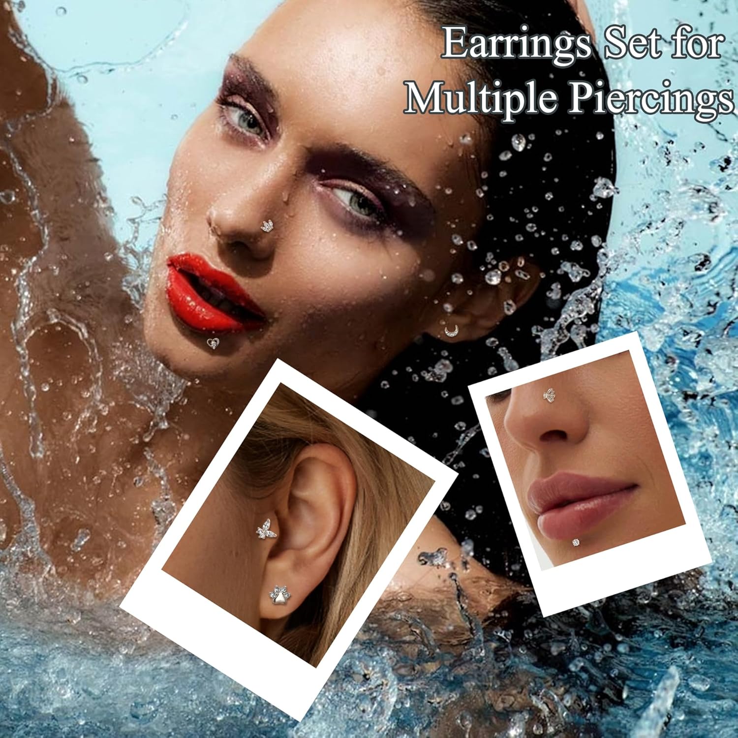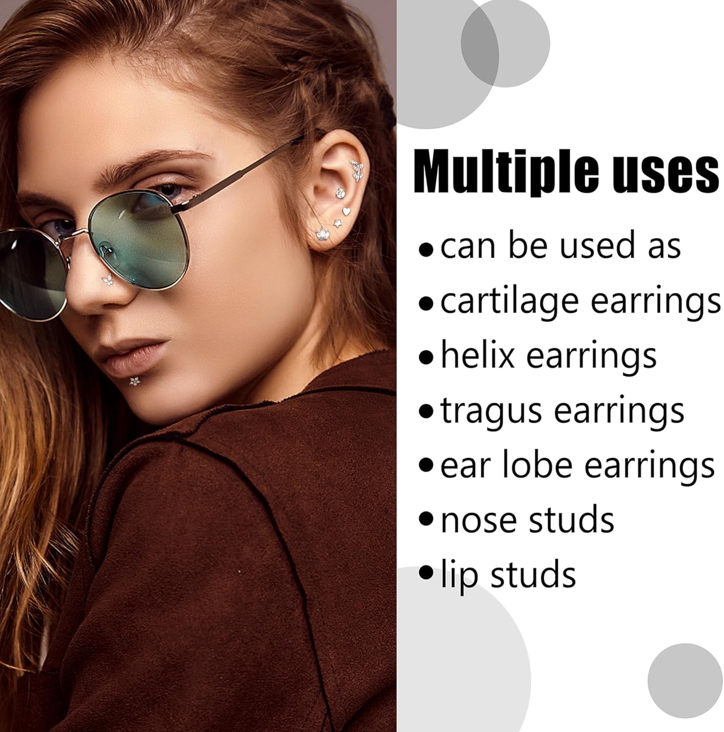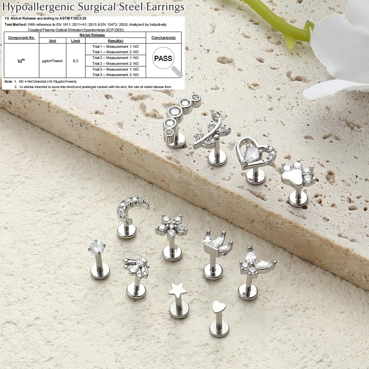 YADOCA 12Pcs Flat Back Stud Earrings Hypoallergenic Surgical Steel Stud Earrings for Women 14K Gold Filled Earrings 18G 16G Cartilage Medusa Conch Helix Tragus Piercing Jewelry 6mm 7mm 8mm 10mm Length