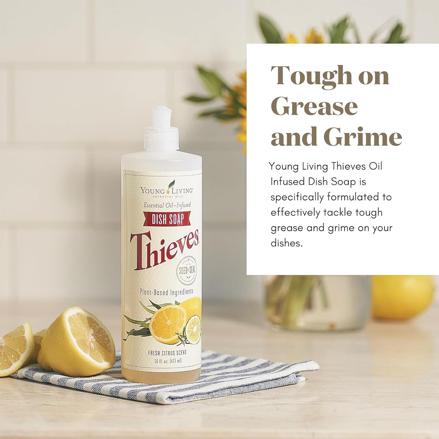 Fresh Citrus Scent – Infused with the invigorating scent of Thieves premium essential oil blend, along with Jade Lemon and Bergamot oils, it leaves your dishes smelling fresh and citrusy.