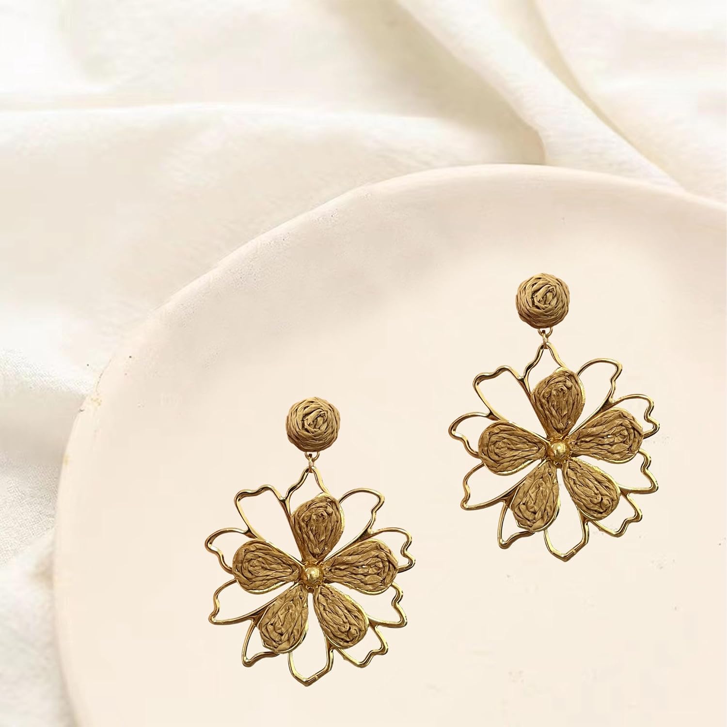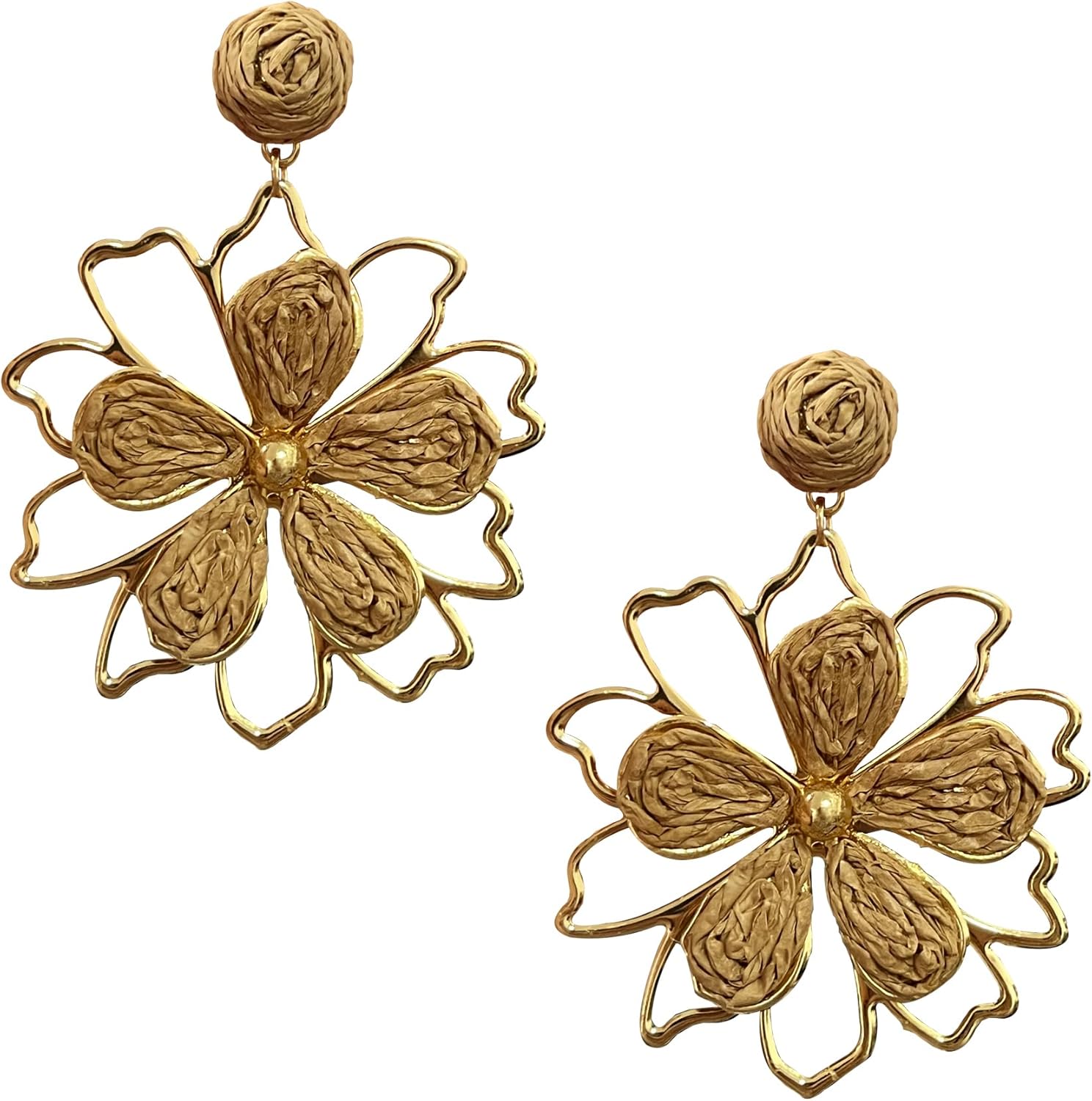 YUNXI Grass Woven Hollow Out Flower Earrings Boho Handmade Dangle Earrings for Women Lightweight Nature-Inspired Floral Jewelry
