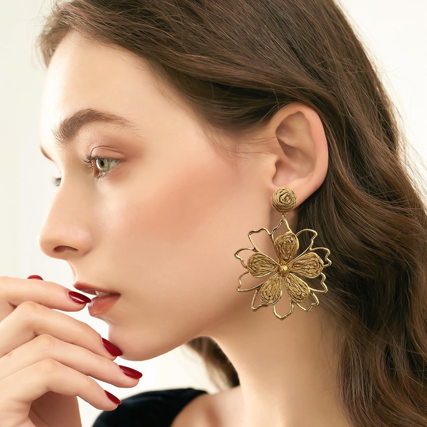 Be the first to review “YUNXI Grass Woven Hollow Out Flower Earrings Boho Handmade Dangle Earrings for Women Lightweight Nature-Inspired Floral Jewelry”