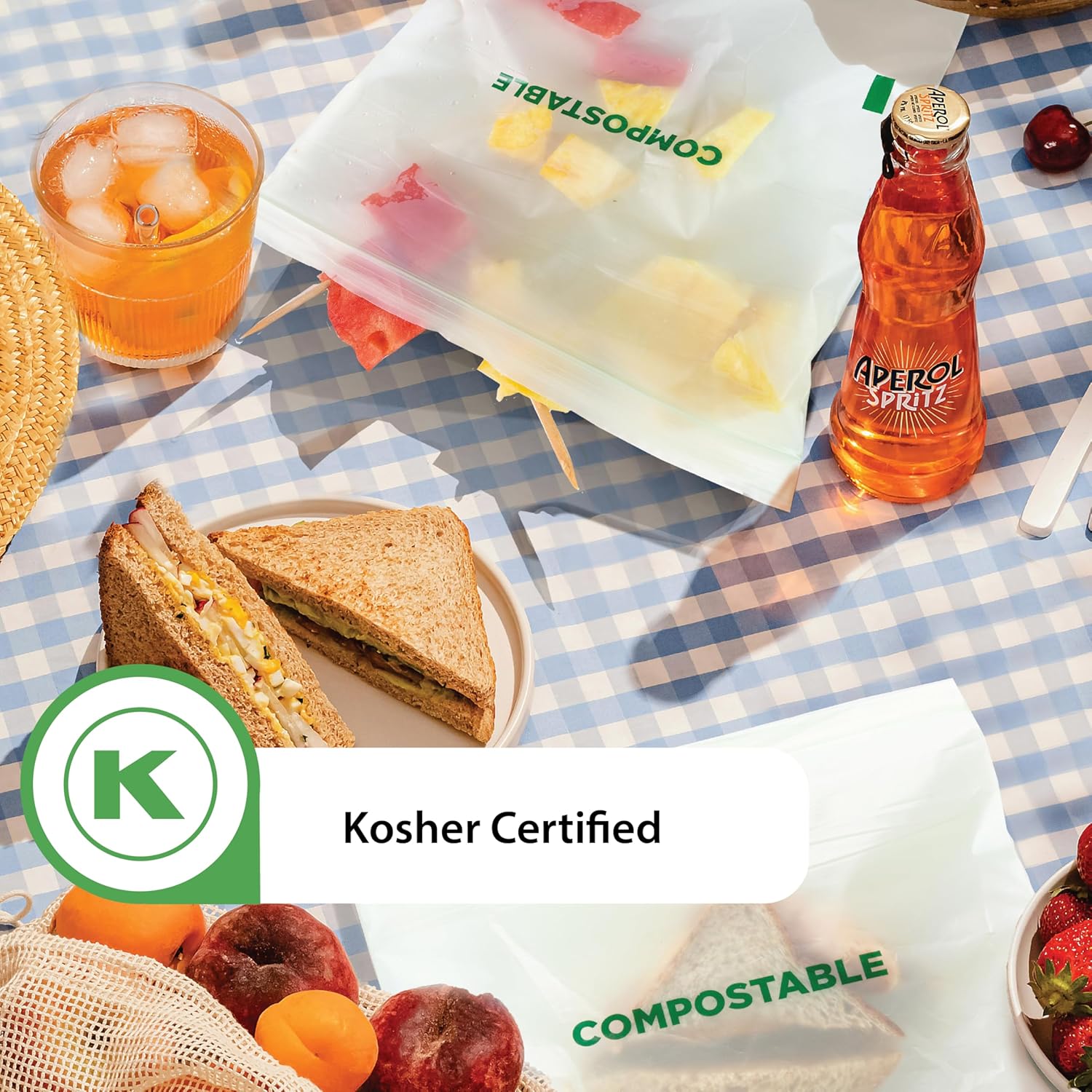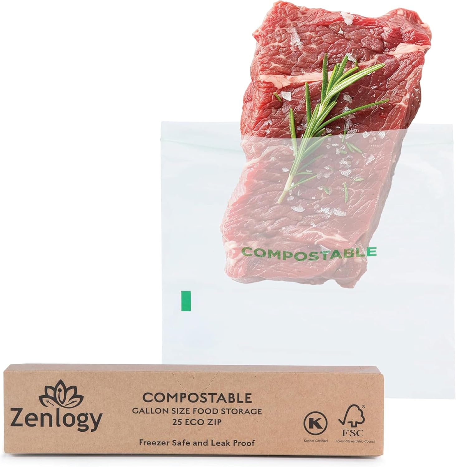 Zenlogy Compostable Gallon Bag (10.5″ x 11″), Resealable Food Storage Bags, Biodegradable & Freezer Safe Baggies, Organic Eco-Friendly Storage Container, 25 Pack